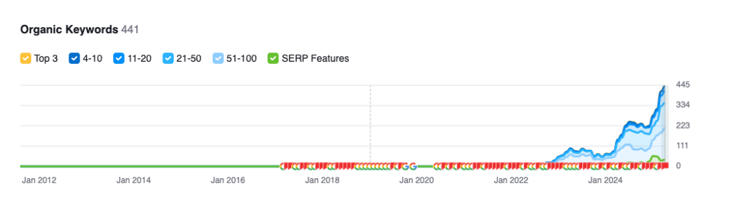 - Keywords grew to 440+, with dozens of new rankings in the Top 3 positions
