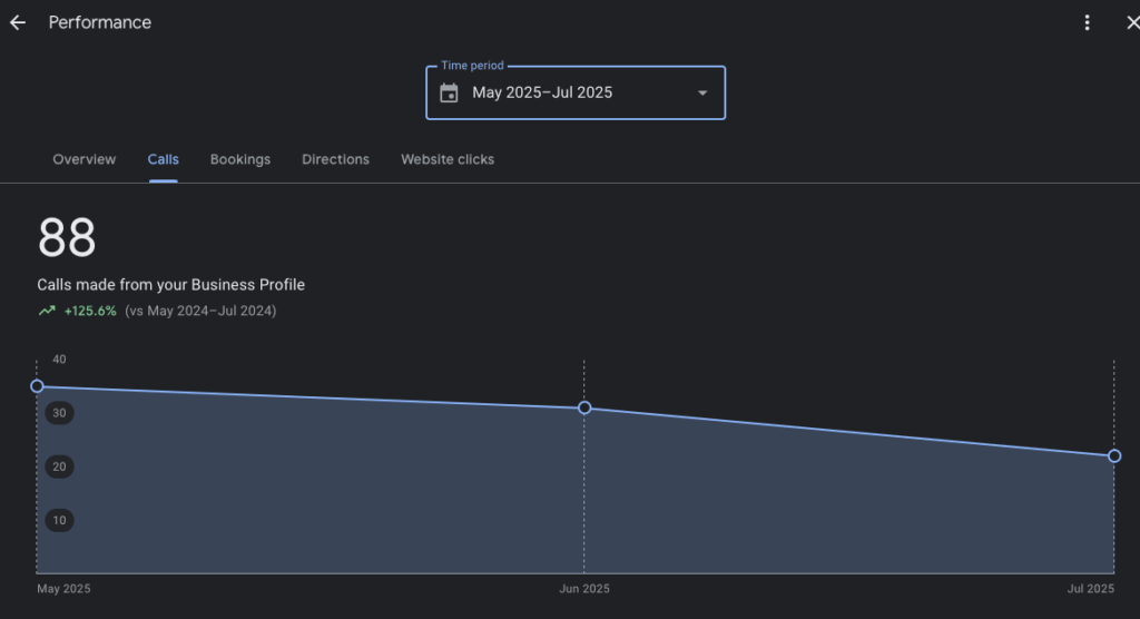 - Generated 88 inbound calls from Google in just two months (June–July 2025), driving direct project inquiries.