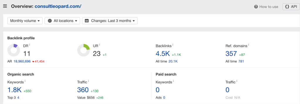 • Domain Rating and referring domains increased significantly, cementing long-term authority
