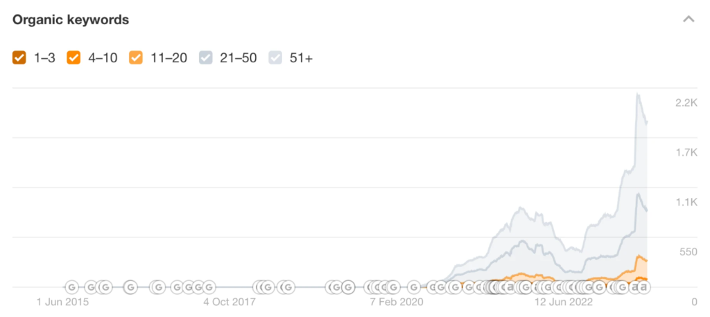 • +550 new keywords ranking, with 10+ keywords in Top 3 (Semrush)